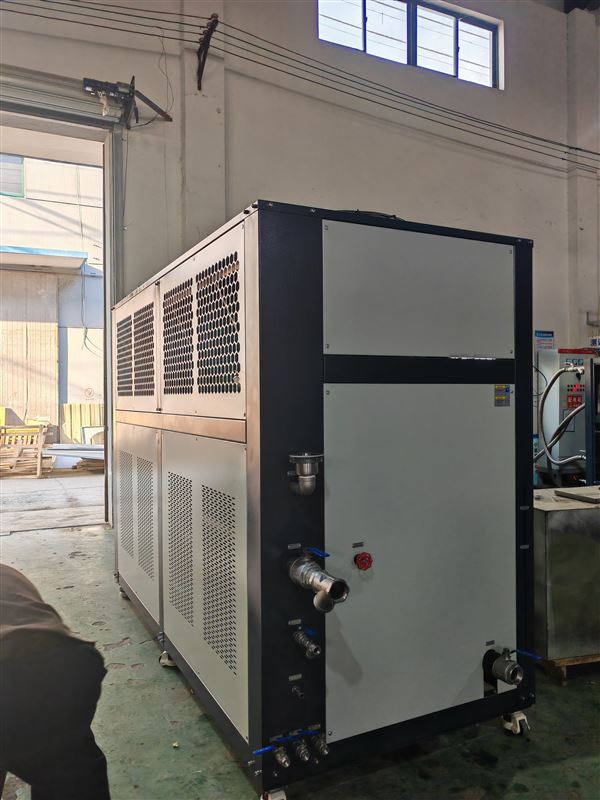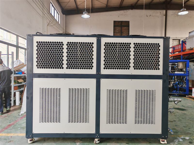 在风冷式冷水机的选型中,选择适合自己的生产需要的型号至关重要,在风冷式冷水机组的整体机身中含有不锈钢水箱和水泵,不需要再多加冷却塔来排热.安装及挪动十分简单方便.但它对环境要求很高,因为这是以热风循环来制冷的,假如机组装在车间自然通风效果不佳的环境下,会直接影响到冷水机制冷的实际效果